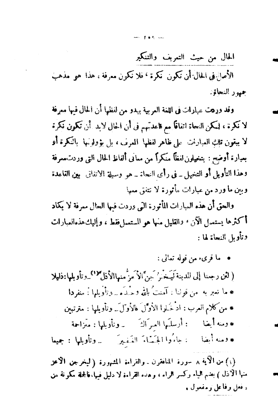 أو تقول: "زار الأصدقاءُ المريضَ مُمْتَنًّا مواسين"، فمن البيّن أنه في المثال الأول توجه الأحوال المتعددة بالتذكير والتأنيث، وفي المثال الثاني يوجهها الإفراد والتثنية والجمع، ومن هذا قول الشاعر: