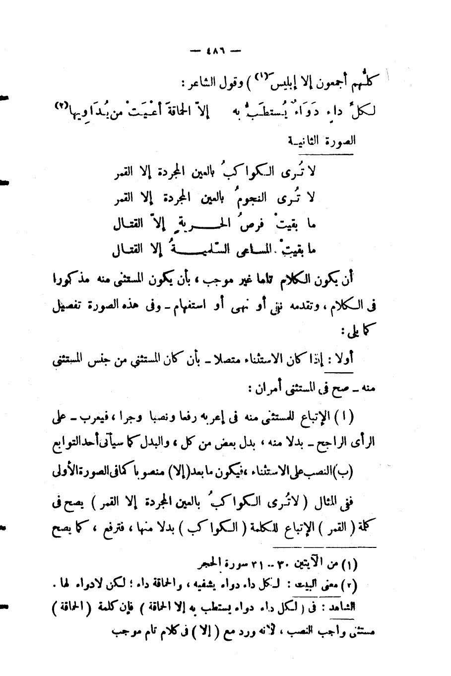 1- تعامل "إلا" الأولى بحسب الأصل في صوره المختلفة التي سبقت دراستها، بل إنها لتتعين لذلك.