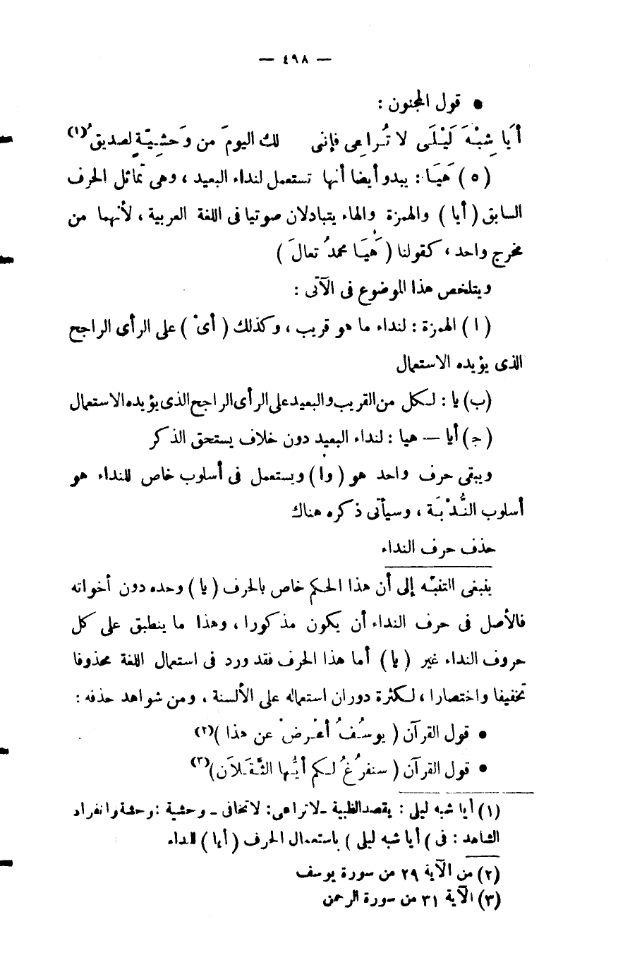 3 الشاهد في "ألا أيهذا المنزل" فأصله: "ألا يا أيهذا المنزل" قبل حذف "يا" وأخذ هذا الأصل في نداء ما فيه الألف واللام "المنزل" فكانت الوسيلة "أيهذا" المكونة من "أي + اسم الإشارة".