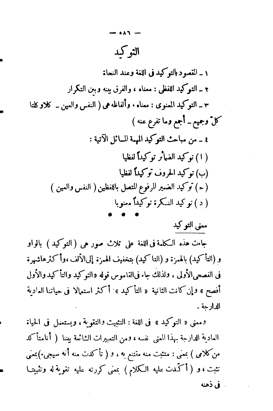 ب- الضمائر البارزة المنفصلة: وهذه أيضا تؤكد بضمير بارز منفصل مناسب، فتقول مثلا مشيرا للمجرم: "أنت أنت القاتلُ" ومن ذلك ما كان يقوله جماعة الرافضة في شوارع الكوفة مشيرين لعَلِيّ: "أنت أنت اللهُ" فأمر بهم، فحرقوا بالنار.