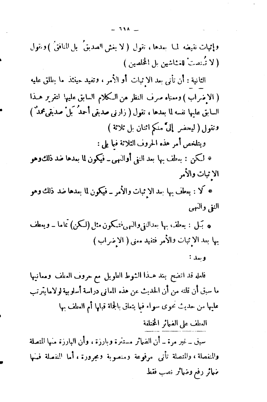 العطف، بخلاف البدل، فحين نقول مثلا: "ألتقي مع الزملاء في الكلية صباحًا ومساءً" تكون كلمة "مساء" مقصودة أيضا بمعنى الجملة كالبدل في جملته، لكن بواسطة حرف العطف، ومن ذلك نفهم ما جاء في تحديده من أنه "بلا واسطة".