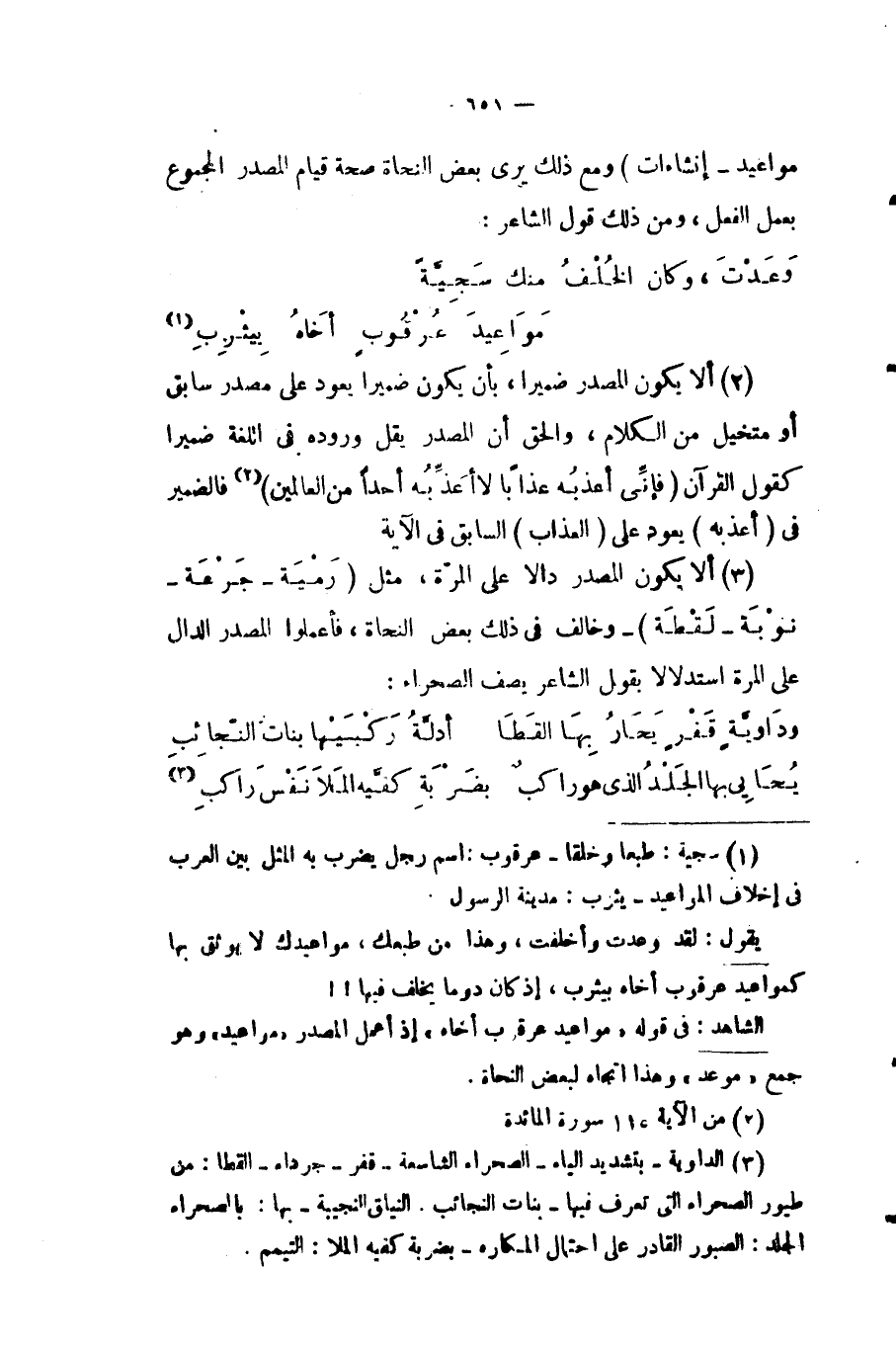 الشاهد: في "ما راعٍ الخلان ذمة ناكث" حيث جاء اسم الفاعل "راعٍ" مجردا من "أل" واستوفى شرطيه: كونه للاستقبال واعتماده على نفي سابق هو "ما" ولذلك قام بعمل الفعل، فرفع الفاعل "الخلان" ونصب المفعول به "ذمة ناكث".