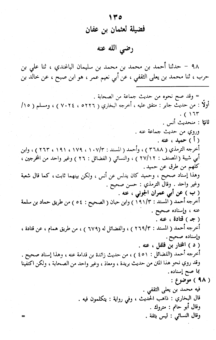 §فَضِيلَةٌ لِعُثْمَانَ بْنِ عَفَّانَ رَضِيَ اللَّهُ عَنْهُ