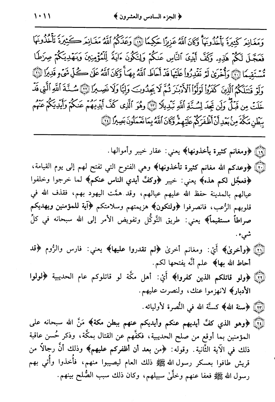 {لقد صدق الله رسوله الرؤيا بالحق} الآية كان رسول الله صَلَّى اللَّهُ عَلَيْهِ وسلم رأى في منامه قبل خروجه عام الحديبية كأنَّه وأصحابه يدخلون مكَّة مُحلِّقين ومُقصِّرين غير خائفين فلمَّا خرج عام الحديبية كانوا قد وطنوا أنفسهم على دخول مكَّة لرؤيا رسول الله صلى الله عليه وسلم فلمَّا صدُّوا عن البيت راب بعضهم ذلك فأخبر الله تعالى أنَّ تلك الرُّؤيا صادقةٌ وأنَّهم يدخلونها إٍن شاء الله آمنين وقوله: {فعلم ما لم تعلموا} علم الله تعالى أنًّ الصَّلاح كان في ذاك الصُّلح ولم تعلموا ذلك {فجعل من دون ذلك} أَيْ: من دون دخولكم المسجد {فتحاً قريباً} وهو صلح الحديبية ولم يكن فتحٌ في الإسلام كان أعظم من ذلك لأنَّه دخل في الإسلام في تلك السِّنين مثل من كان في الإسلام قبل ذلك أو أكثر وقيل: يعني: فتح خيبر