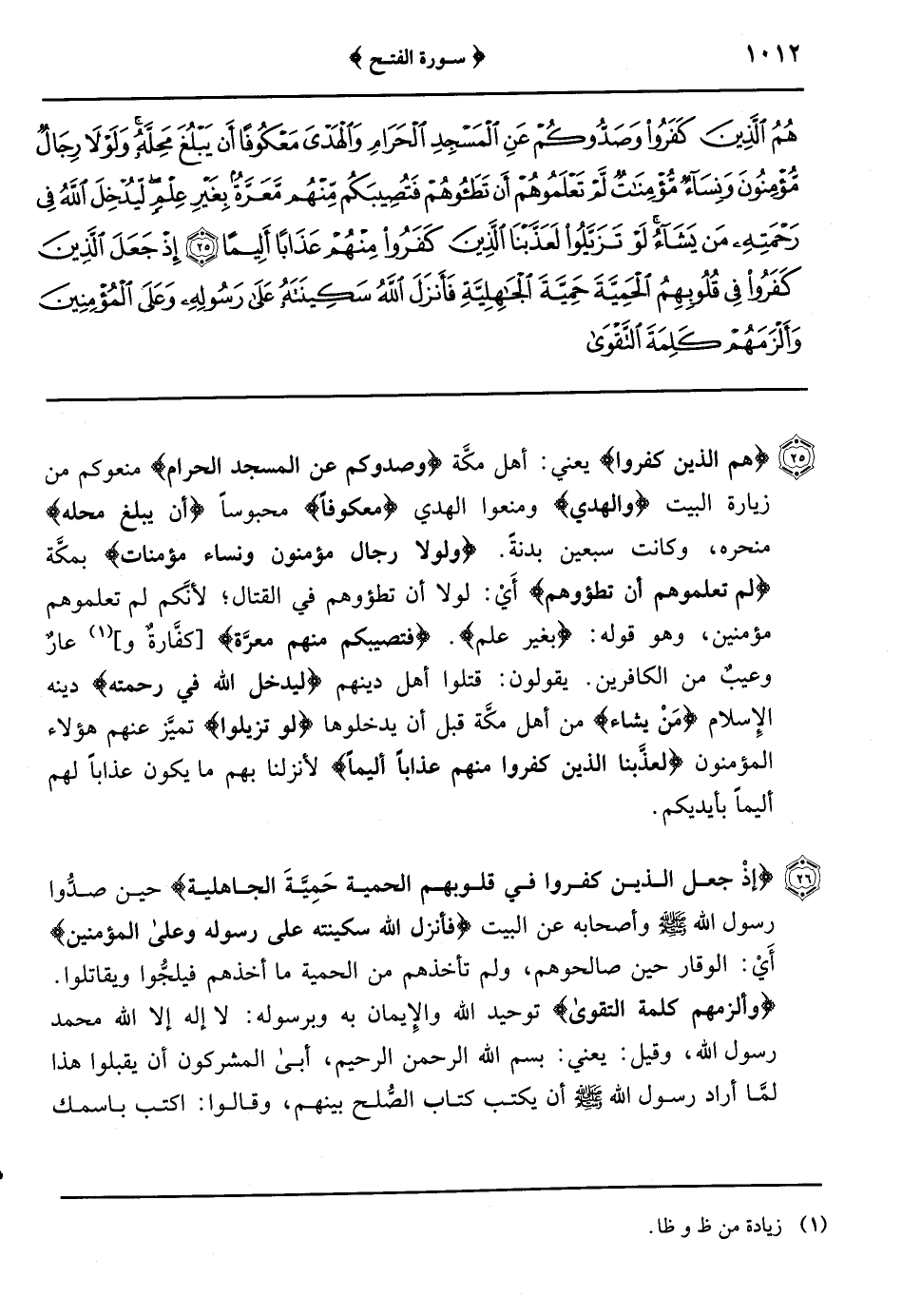 {محمد رسول الله والذين معه} من المؤمنين {أشداء} غلاظٌ {على الكفار رحماء بينهم} متوادُّون متعاطفون {تراهم ركعاً سجداً} في صلواتهم {يبتغون فضلاً من الله} أن يدخلهم الجنَّة {ورضواناً} أن يرضى عنه {سيماهم} علامتهم {في وجوههم من أثر السجود} يعني: نوراً وبياضاً في وجوههم يوم القيامة يُعرفون بذلك النُّور أنَّهم سجدوا في دار الدُّنيا لله تعالى {ذلك مثلهم} صفة محمَّد صلى الله عليه وسلم وأصحابه {في التوراة ومثلهم في الإنجيل كزرع أخرج شطأه} فراخه ونباته {فآزره} قوَّاه وأعانه أيْ: قوَّى الشَّطأ الزَّرع كما قوَّى أمر محمَّد وأصحابه والمعنى: أنَّهم يكونون قليلاً ثمَّ يكثرون وهذا مثل ضربه الله تعالى لنبيِّه عليه السَّلام إذ خرج وحده فأيَّده بأصحابه كما قوَّى الطَّاقة من الزرع بما ينبت حوله {فاستغلظ} فَغَلُظَ وقوِيَ {فاستوى} ثمَّ تلاحق نباته وقام على {سوقه} جمع ساق {يعجب الزراع} بحسن نباته واستوائه {ليغيظ بهم الكفار} فعل الله تعالى ذلك بمحمَّد وأصحابه ليغيظ بهم أهل الكفر {وعد الله الذين آمنوا وعملوا الصالحات منهم} أَيْ: من أصحاب محمد عليه السَّلام {مغفرة وأجراً عظيماً}