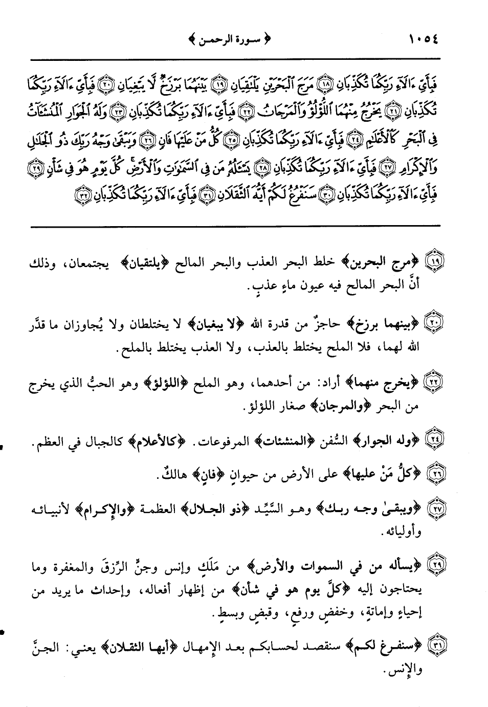 {فيهن قاصرات الطرف} حابسات الأعين إلاَّ على أزواجهنَّ ولا ينظرون إلى غيرهم {لم يَطْمِثْهُنَّ} لم يُجامعهنَّ {إنس قبلهم} قبل أزواجهن {ولا جانٌ}