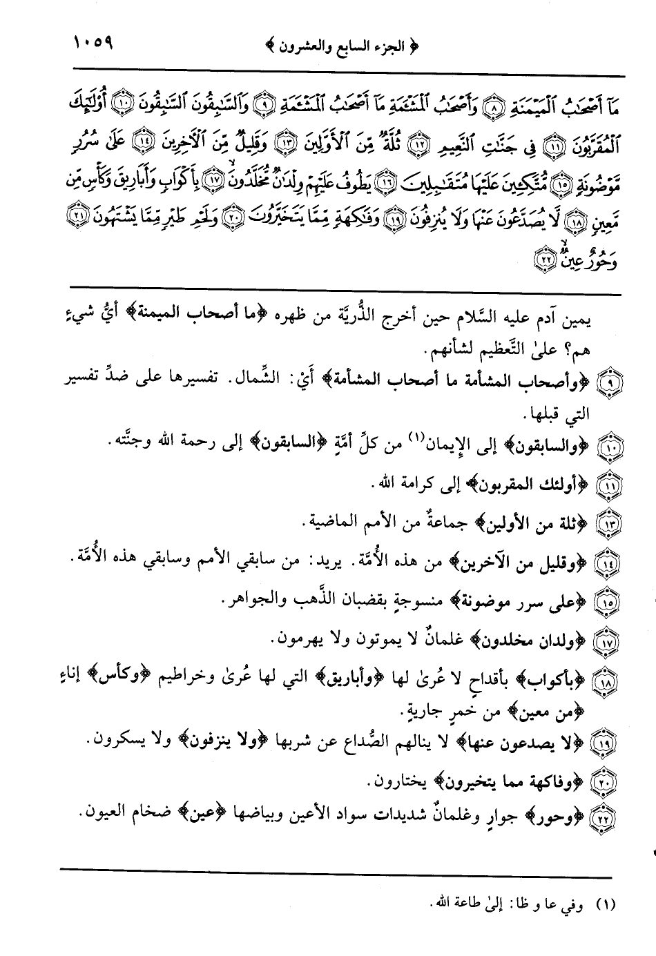 {وثلة من الآخرين} من هذه الأُمَّة يعني: إنَّ أصحاب الجنَّة نصفان: نصفٌ من الأمم الماضية ونصفٌ من هذه الأمَّة ثمَّ ذكر منازل أصحاب الشِّمال فقال:
