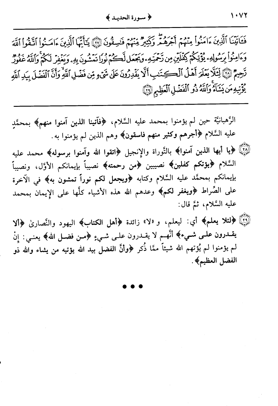 {فمن لم يجد} الرَّقبة لفقره {فصيام شهرين متتابعين} لو أفطر فيما بين ذلك ابطل التَّتابع ويجب عليه الاستئناف {فمن لم يستطع} ذلك لمرضٍ أو لخوفِ مشقَّةٍ عظيمةٍ {فإطعام ستين مسكيناً} لكلِّ مسكينٍ مدٌّ من غالب القوت {ذلك} أي: الفرض الذين وصفنا {لتؤمنوا بالله ورسوله} لتصدقوا ما أتى به الرَّسول عليه السَّلام وتُصدِّقوا أنَّ الله تعالى به أمر {وتلك حدود الله} يعني: ما وصف في الظِّهار والكفَّارة {وللكافرين} لمن لم يُصدِّق به {عذاب أليم}