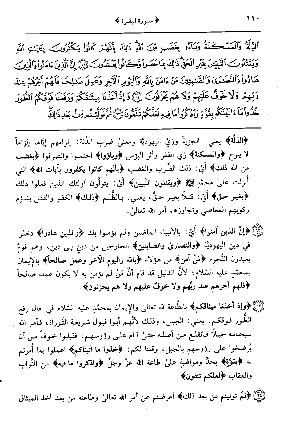 {وإذ أخذنا ميثاقكم} بالطَّاعة لله تعالى والإيمان بمحمَّدٍ عليه السَّلام في حال رفع الطُّور فوقكم يعني: الجبل وذلك لأنَّهم أبوا قبول شريعة التَّوراة فأمر الله سبحانه جبلاً فانقلع من اصله حتى قام على رؤوسهم فقبلوا خوفاً من أن يُرضخوا على رؤوسهم بالجبل وقلنا لكم: {خذوا ما آتيناكم} اعملوا بما أُمرتم به {بقوَّةٍ} بجدٍّ ومواظبةٍ على طاعة الله عز وجل {واذكروا ما فِيهِ} من الثَّواب والعقاب {لعلكم تتقون}