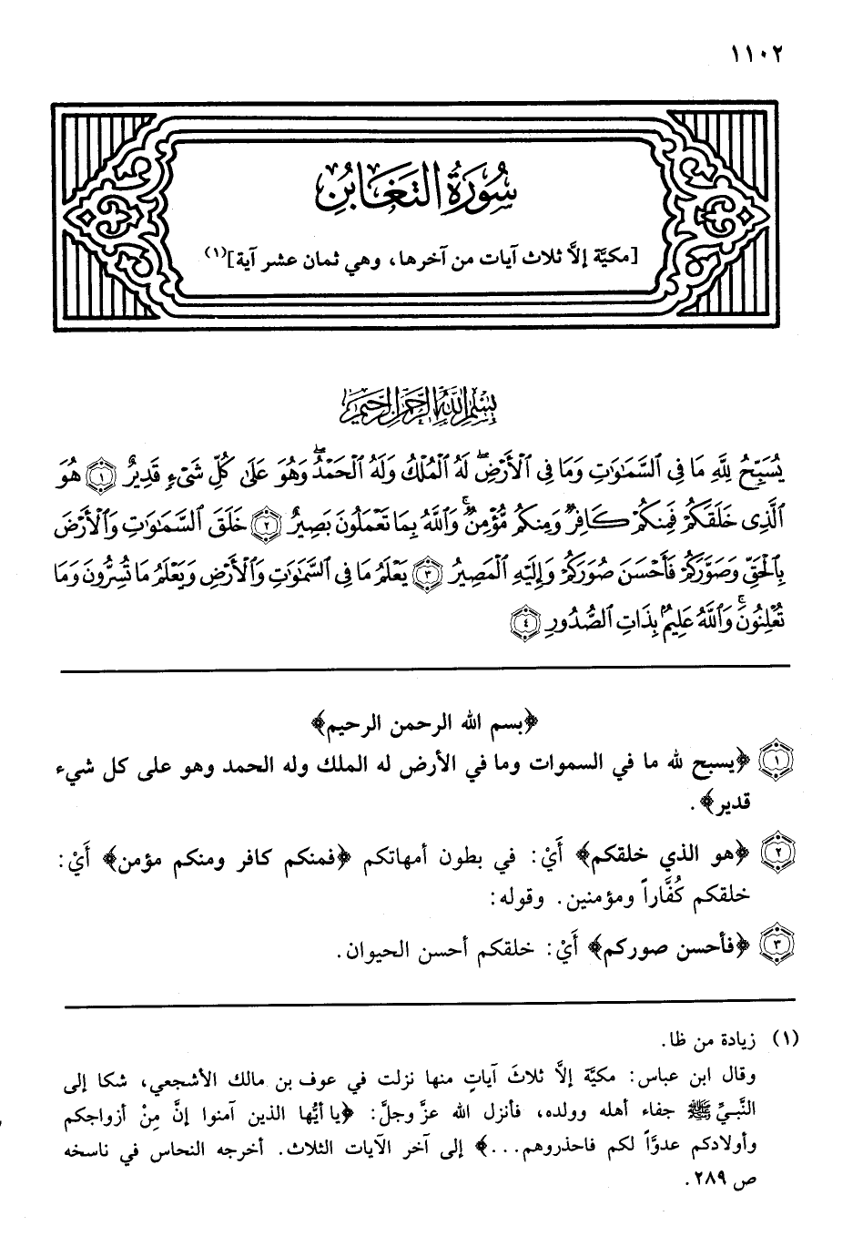 {يا أيها الذين آمنوا إنَّ من أزواجكم وأولادكم عدواً لكم} نزلت في قومٍ آمنوا وأرادوا الهجرة فثبَّطهم أهلهم وأولادهم وقالوا: لا نصبر على مفارفتكم فأخبر الله تعالى أنَّهم أعداءٌ لهم بحملهم إيَّاهم على المعصية وترك الطَّاعة {فاحذروهم} أن تقبلوا منهم ولا تطيعوهم ثمَّ إذا هاجر هذا الذي ثبَّطه أهله عن الهجرة رأى النَّاس قد تعلَّموا القرآن وتفقَّهوا في الدِّين فيهمُّ أن يعاقب أهله فقال الله تعالى: {وإن تعفوا وتصفحوا وتغفروا فإن الله غفور رحيم}