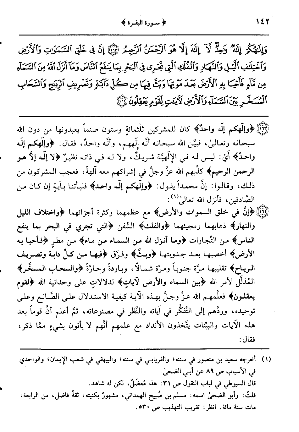 {وإلهكم إله واحدٌ} كان للمشركين ثلاثمائة وستون صنما يعبدونها من دون الله سبحانه وتعالى فبيَّن الله سبحانه أنَّه إِلههم وأّنَّه واحدٌ فقال: {وإلهكم إله واحدٌ} أَيْ: ليس له في الإِلهيَّة شريكٌ ولا له في ذاته نظيرٌ {لا إله إلا هو الرحمن الرحيم} كذَّبهم الله عز وجل في إشراكهم معه آلهةً فعجب المشركون من ذلك وقالوا: إنَّ محمداً يقول: {وَإِلَهُكُمْ إِلَهٌ وَاحِدٌ} فلأتنا بآيةٍ إن كان من الصَّادقين فأنزل الله تعالى: