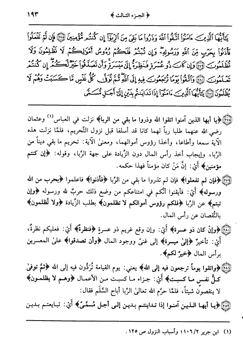 {واتقوا يوماً ترجعون فيه إلى الله} يعني: يوم القيامة تُرَدُّون فِيهِ إِلَى اللَّهِ {ثُمَّ تُوَفَّى كُلُّ نَفْسٍ ما كسبت} أي: جزاء ما كسبت من الأعمال {وهم لا يظلمون} لا ينقصون شيئاً فلمَّا حرَّم الله تعالى الرِّبا أباح السِّلَم فقال: