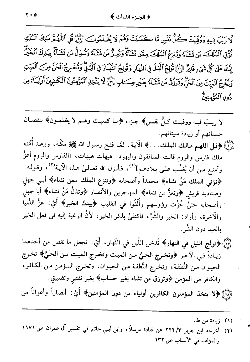 {قل اللهم مالك الملك} لمَّا فتح رسول الله صَلَّى اللَّهُ عَلَيْهِ وسلم مكَّة ووعد أُمَّته ملك فارس والروم قالت المنافقون واليهود: هيهات هيهات (الفارس والروم أعزُّ وأمنع من أن يُغْلَبَ على بلادهم) فأنزل الله تعالى هذه الآية وقوله: {تُؤْتِي الْمُلْكَ مَنْ تَشَاءُ} محمداً وأصحابه {وَتَنْزِعُ الملك ممن تشاء} أبي جهلٍ وصناديد قريشٍ {وتعزُّ من تشاء} المهاجرين والأنصار {وتذلُّ مَنْ تشاء} أبا جهلٍ وأصحابه حتى حُزَّت رؤوسهم وأُلْقُوا في القليب {بيدك الخير} أَيْ: عزُّ الدُّنيا والآخرة وأراد: الخير والشَّرَّ فاكتفى بذكر الخير لأنَّ الرغبة إليه في فعل الخير بالعبد دون الشَّر