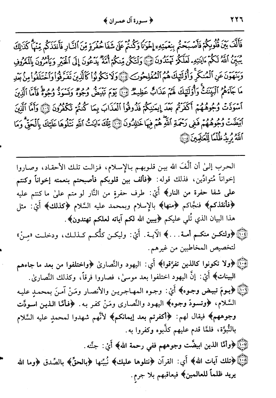 {ولا تكونوا كالذين تفرَّقوا} أَي: اليهود والنَّصارى {واختلفوا من بعد ما جاءهم البينات} أَيْ: إنَّ اليهود اختلفوا بعد موسى فصاروا فرقاً وكذلك النَّصارى