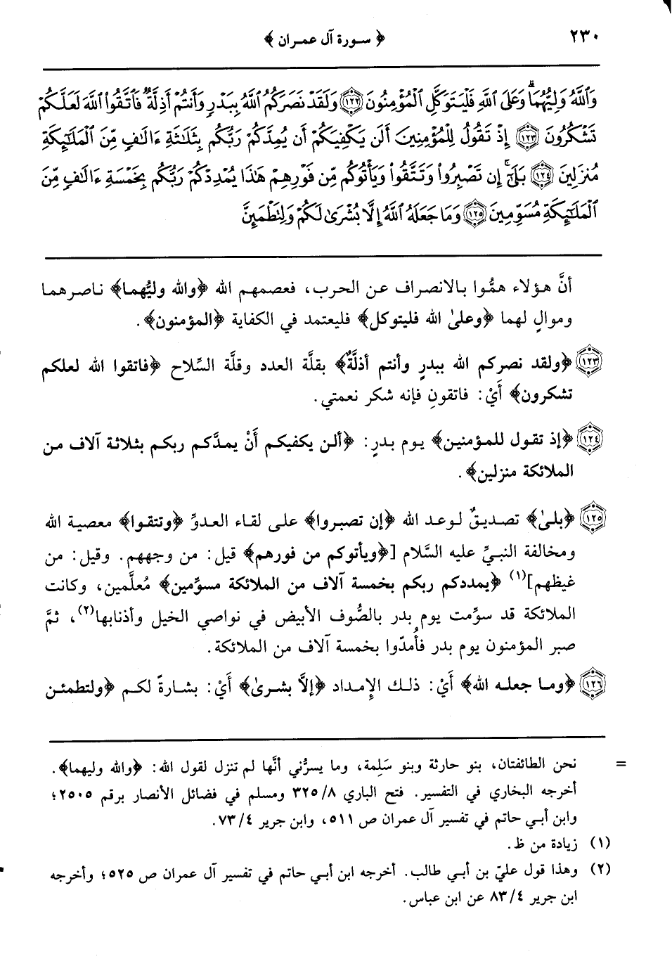 {بلى} تصديقٌ لوعد الله {إن تصبروا} على لقاء العدوِّ {وتتقوا} معصية الله ومخالفة النبيِّ عليه السَّلام ( {ويأتوكم من فورهم} قيل: من وجههم وقيل: من غيظهم) {يُمْدِدْكُمْ رَبُّكُمْ بِخَمْسَةِ آلافٍ مِنَ الْمَلائِكَةِ مُسَوِّمِينَ} مُعلَّمين وكانت الملائكة قد سوِّمت يوم بدر بالصُّوف الأبيض في نواصي الخيل وأذنابها ثمَّ صبر المؤمنون يوم بدر فأُمدّوا بخمسة آلاف من الملائكة
