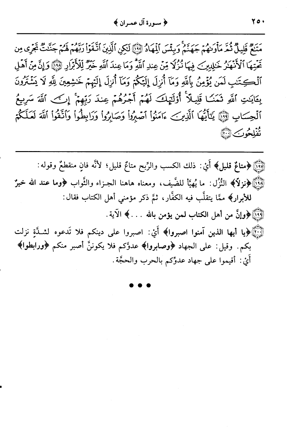 {يا أيها الذين آمنوا اصبروا} أَيْ: اصبروا على دينكم فلا تَدعوه لشدِّةٍ نزلت بكم وقيل: على الجهاد {وصابروا} عدوَّكم فلا يكوننَّ أصبر منكم {ورابطوا} أَيْ: اقيموا على جهاد عدوِّكم بالحرب والحجَّة