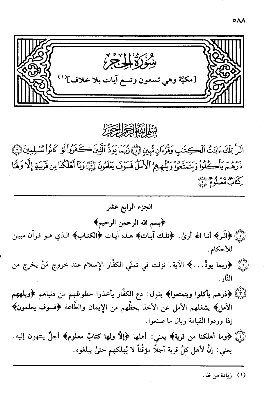 {ربما يودُّ} الآية نزلت في تمنِّي الكفَّار الإِسلام عند خرةج مَنْ يخرج من النَّار