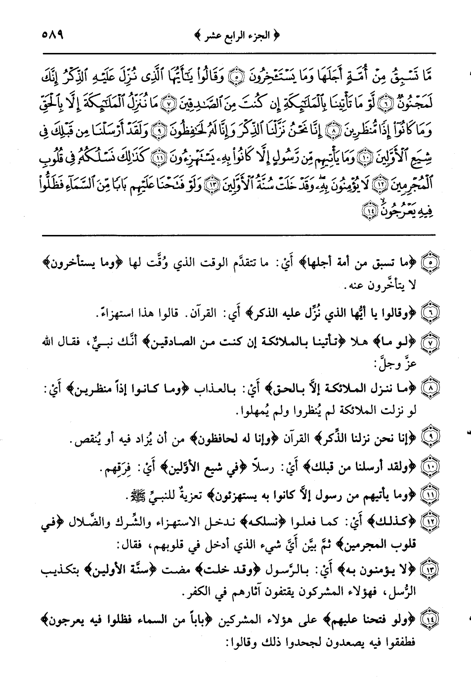 {ما ننزل الملائكة إلاَّ بالحق} أَيْ: بالعذاب {وما كانوا إذاً منظرين} أَيْ: لو نزلت الملائكة لم يُنظروا ولم يُمهلوا
