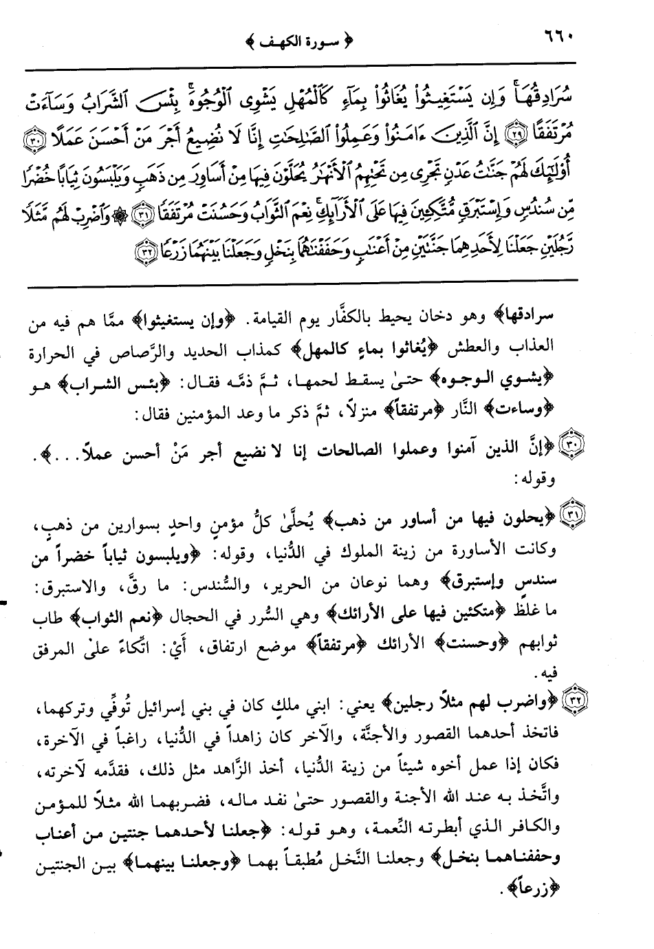 {وأحيط بثمره} وأهلكت أشجاره المثمرة {فأصبح يقلب كفيه} يضرب يديه واحدةً على الأخرى ندامةً {على ما أنفق فيها وهي خاوية} ساقطةٌ {على عروشها} سقوفها وما عرش للكروم {وَيَقُولُ يَا لَيْتَنِي لَمْ أُشْرِكْ بِرَبِّي أَحَدًا} تنمى أنَّه كان مُوحِّداً غير مشركٍ حين لم ينفعه التَّمني
