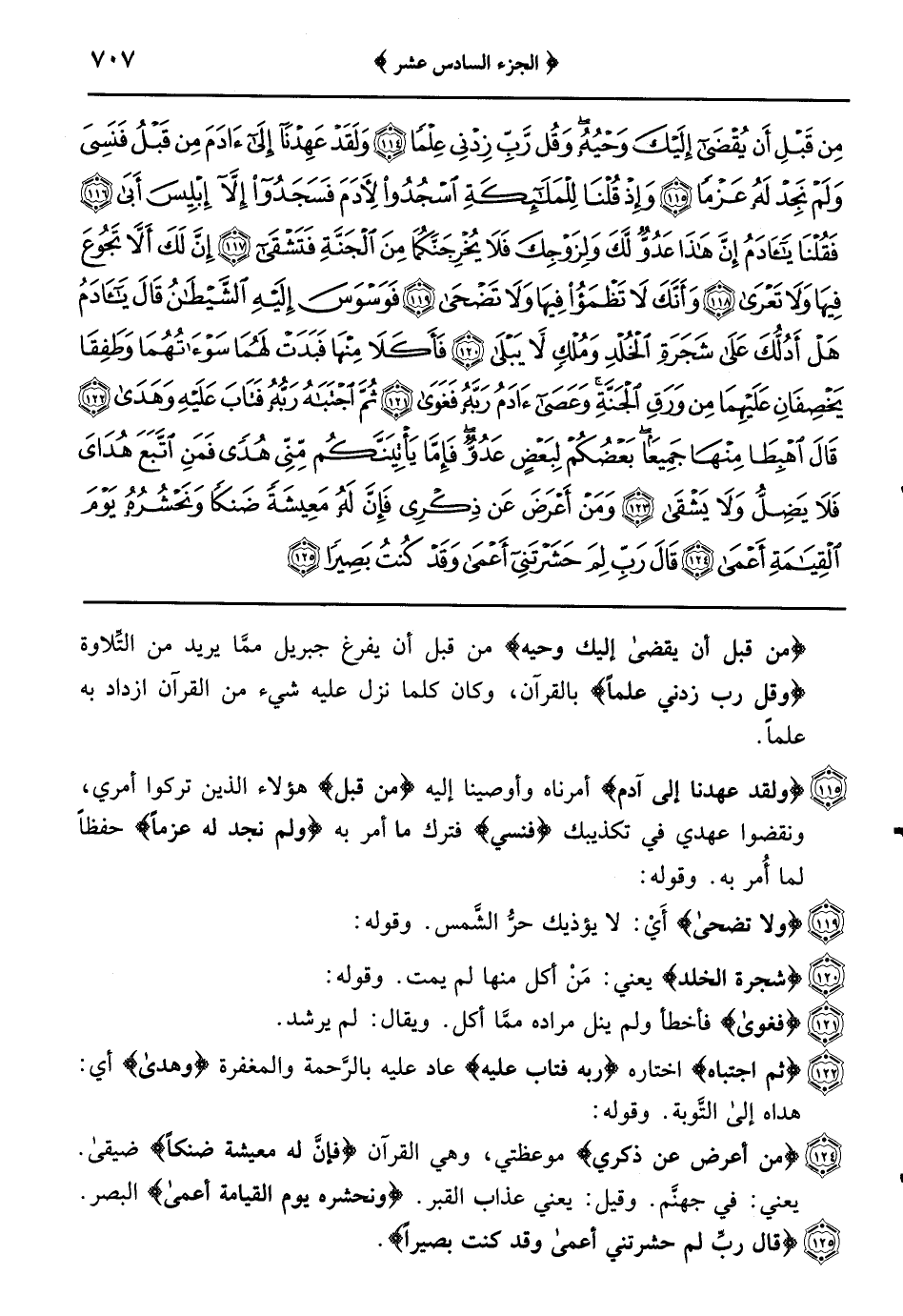 {وأمر أهلك بالصلاة} يعني: قريشاً وقيل: أهل بيته {لا نسألك رزقاً} لخلقنا ولا لنفسك {نحن نرزقك والعاقبة} الجنَّة {للتقوى} لأهل التَّقوى يعني: لك ولمن صدَّقك ونزلت هذه الآيات لمَّا استسلف رسول الله صلى الله عليه وسلم من يهوديٍّ وأبى أن يعطيه إلاَّ برهنٍ وحزن لذلك رسول الله صلى الله عليه وسلم