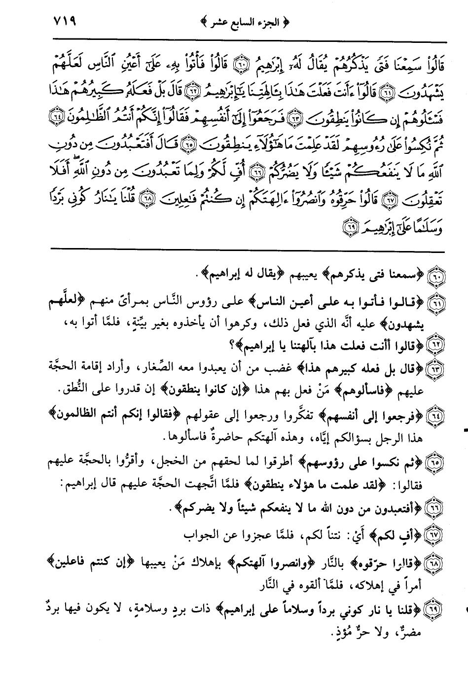 {ففهمناها سليمان} ففهمنا القضيَّة سليمان دون داود عليهما السَّلام وذلك أنَّ داود حكم لأهل الحرث برقاب الغنم وحكم سليمان بمنافعهم إلى أن يعود الحرث كما كان {وسخرنا مع داود الجبال يسبحن} يجاوبنه بالتَّسبيح {و} كذلك {الطير وكنا فاعلين} ذلك