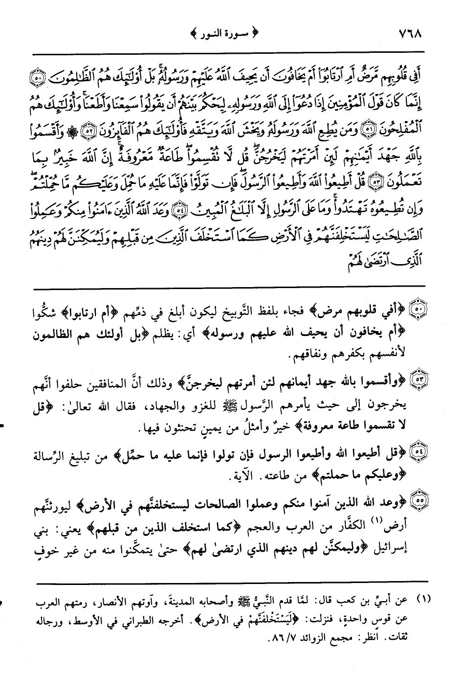 {ليس على الأعمى حرج} الآية كان المسلمون يخرجون للغزو ويدفعون مفاتيح بيوتهنَّ إلى الزَّمنى الذين لا يخرجون ويقولون لهم: قد أحللنا لكم أن تأكلوا مما فيها فكانوا يتوفون ذلك حتى نزلت هذه الآية وقوله: {ولا على أنفسكم} أراد: ولا عليكم أنفسكم {أن تأكلوا من بيوتكم} أَيْ: بيوت أولادكم فجعل بيوت أولادهم بيوتهم لأنَّ ولد الرَّجل من كسبه ومالَه كمالِه وقوله: {أو ما ملكتم مفاتحه} يريد: الزَّمنى الذين كانوا يخزنون للغزاة {ليس عليكم جناح أن تأكلوا} من منازل هؤلاءٍ إذا دخلتموها وإن لم يحضروا ولم يعلموا من غير أن يحملوا وهذه رخصةٌ من الله تعالى لطفاً بعباده ورغبة بهم عن دناءة الأخلاق وضيق النَّظر وقوله: {أَوْ صديقكم} يجوز للرَّجل أن يدخل بيت صديقه فيتحرَّم بطعامه من غير استئذانٍ بهذه الآية وقوله: {أن تأكلوا جميعاً أو أشتاتاً} يقول: لا جناح عليكم إن اجتمعتم في الأكل أو أكلتم فرادى وإن اختلفتم فكان فيكم الزَّهيد والرغيب والعليل والصَّحيح وذلك أنَّ المسلمين تركوا مؤاكلة المرضى والزَّمنى بعد نزول قوله تعالى: {ولا تأكلوا أموالكم بينكم بالباطل} فقالوا: إنَّهم لا يستوفون من الأكل فلا تحلُّ لنا مؤاكلتهم فنزلت الرُّخصة في هذه الآية {فإذا دخلتم بيوتاً فسلموا على أنفسكم} فليسلِّم بعضكم على بعض وقيل: إذا دخلتم بيوتاً خالية فليقل الدَّاخل: السَّلام علينا وعلى عباد الله الصالحين وقوله تعالى: