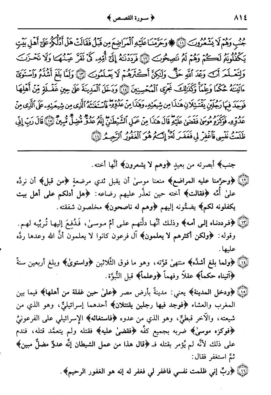 {ولما توجَّه} قصد بوجهه {تلقاء مدين} نحوها {قَالَ عَسَى رَبِّي أَنْ يَهْدِيَنِي سَوَاءَ السَّبِيلِ} قصد الطَّريق وذلك أنَّه لم يكن يعرف الطَّريق