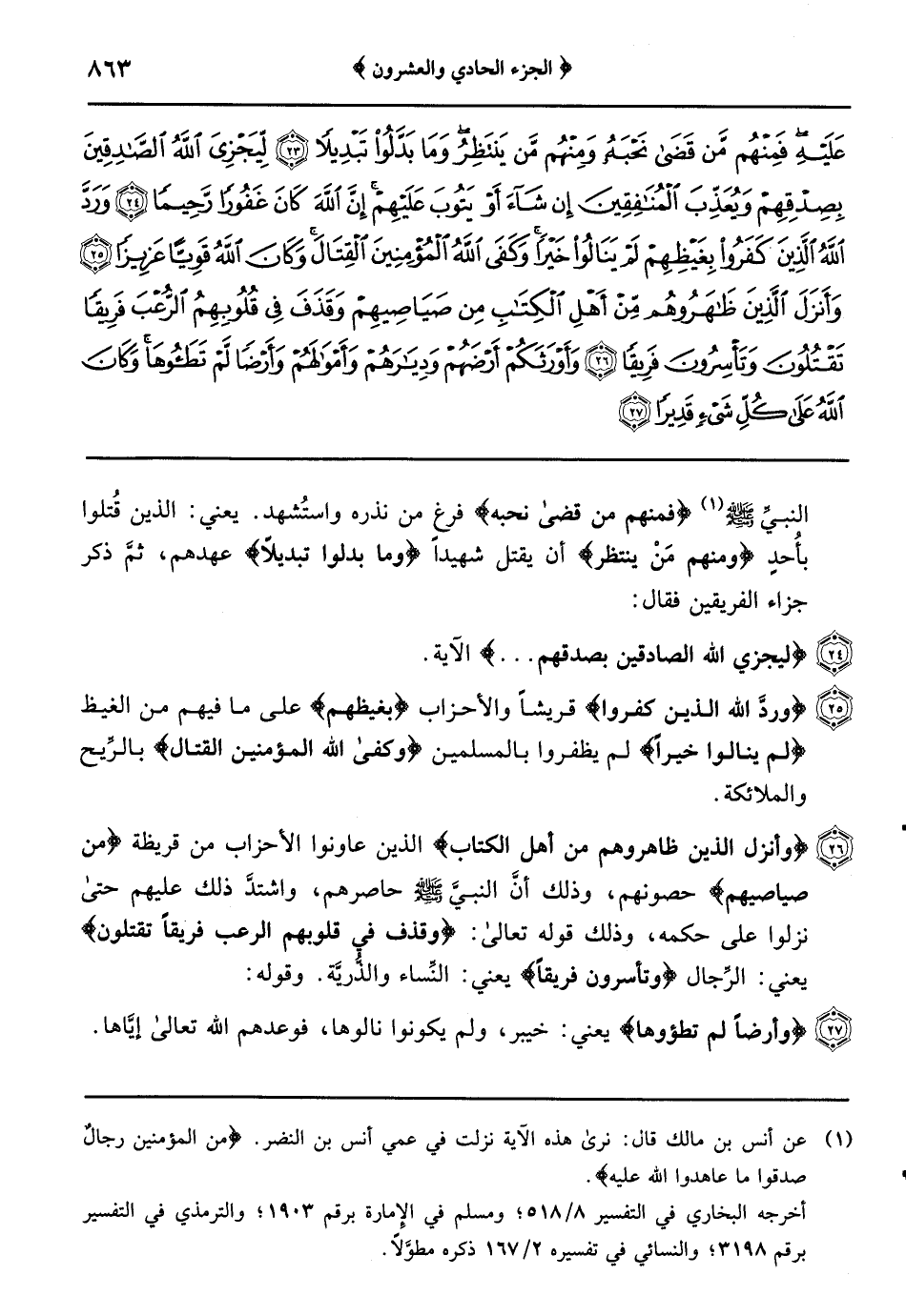 {وقرن في بيوتكن} أمرٌ لهنَّ من الوقار والقرار جميعاً {ولا تبرجن} ولا تُظهرن المحاسن كما كان يفعله أهل الجاهليَّة وهو ما بين عيسى ومحمد صلوات الله عليهما {إنما يريد الله ليذهب عنكم الرجس} وهو كلُّ مُستَنكرٍ ومُستقذَرٍ من عملٍ {أهل البيت} يعني: نساء النبيِّ صلى الله عليه وسلم ورجال أهل بيته