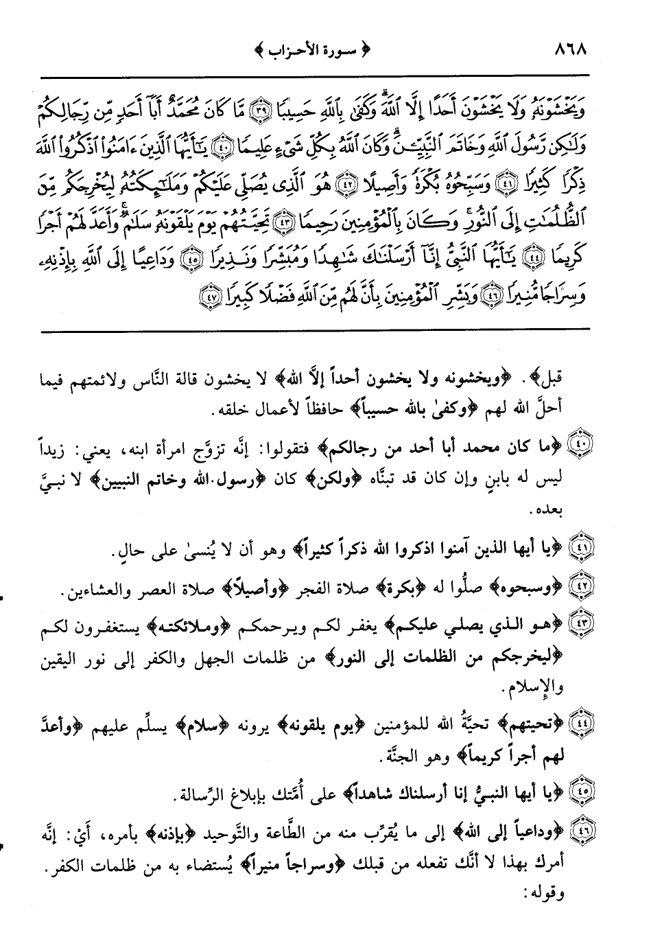 {ترجي من تشاء منهن} تُؤخِّر {وتؤوي} وتضمُّ {إليك مَنْ تشاء} أباح الله سبحانه له أن يترك القسمة والتَّسوية بين أزواجه حتى إنَّه ليؤخِّر مَنْ شاء منهنَّ عن وقت نوبتها ويطأ مَنْ يشاء من غير نوبتها ويكون الاختيار في ذلك إليه يفعل فيه ما يشاء وهذا من خصائصه {ومن ابتغيت} طلبتَ وأردتَ إصابتها {ممن عزلت} هجرتَ وأخَّرت نوبتها {فلا جناح عليك} في ذلك كلِّه {ذلك أدنى أن تقرَّ أعينهنَّ} الآية إذا كانت هذه الرُّخصة مُنزَّلة من الله سبحانه عليك كان أقرب إلى أن {وَيَرْضَيْنَ بِمَا آتَيْتَهُنَّ كُلُّهُنَّ وَاللَّهُ يَعْلَمُ مَا فِي قُلُوبِكُمْ} من أمر النِّساء والميل إلى بعضهنَّ ولمَّا خيَّر النبي صلى الله عليه وسلم نساءه فاخترنه ورضين به قصره الله سبحانه عليهنَّ وحرَّم عليه طلاقهنَّ والتَّزوُّج بسواهنَّ وجعلهنَّ أُمَّهات المؤمنين وهو قوله: