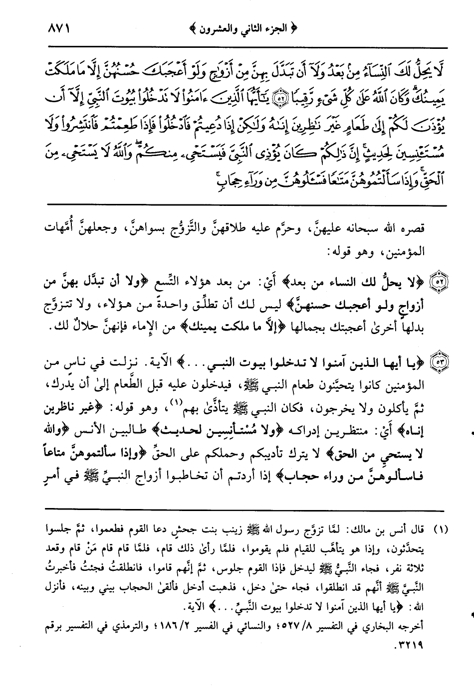 {يأ أيها النبي قل لأزواجك} الآية كان قومٌ من الزُّناة يتَّبعون النِّساء إذا خرجن ليلاً ولم يكونوا يطلبون إلاَّ الإِماء ولم يكن يومئذ تُعرفْ الحرَّة من الأمة لأنَّ زِيَّهُنَّ كان واحداً إنما يخرجون في درع وخمار فنهيى الله سبحانه الحرائر أن يتشبَّهنَّ بالإماء وأنزل قوله تعالى: {يدنين عليهنَّ من جلابيبهنَّ} أَيْ: يرخين أرديتهنَّ وملاحفهنَّ ليعلم أنهنَّ حرائر فلا يتعرض لهنَّ وهو قوله: {ذَلِكَ أَدْنَى أَنْ يُعْرَفْنَ فَلا يؤذين وكان الله غفوراً} لما سلف من ترك السِّتر {رحيماً} بهنَّ إذ يسترهنَّ