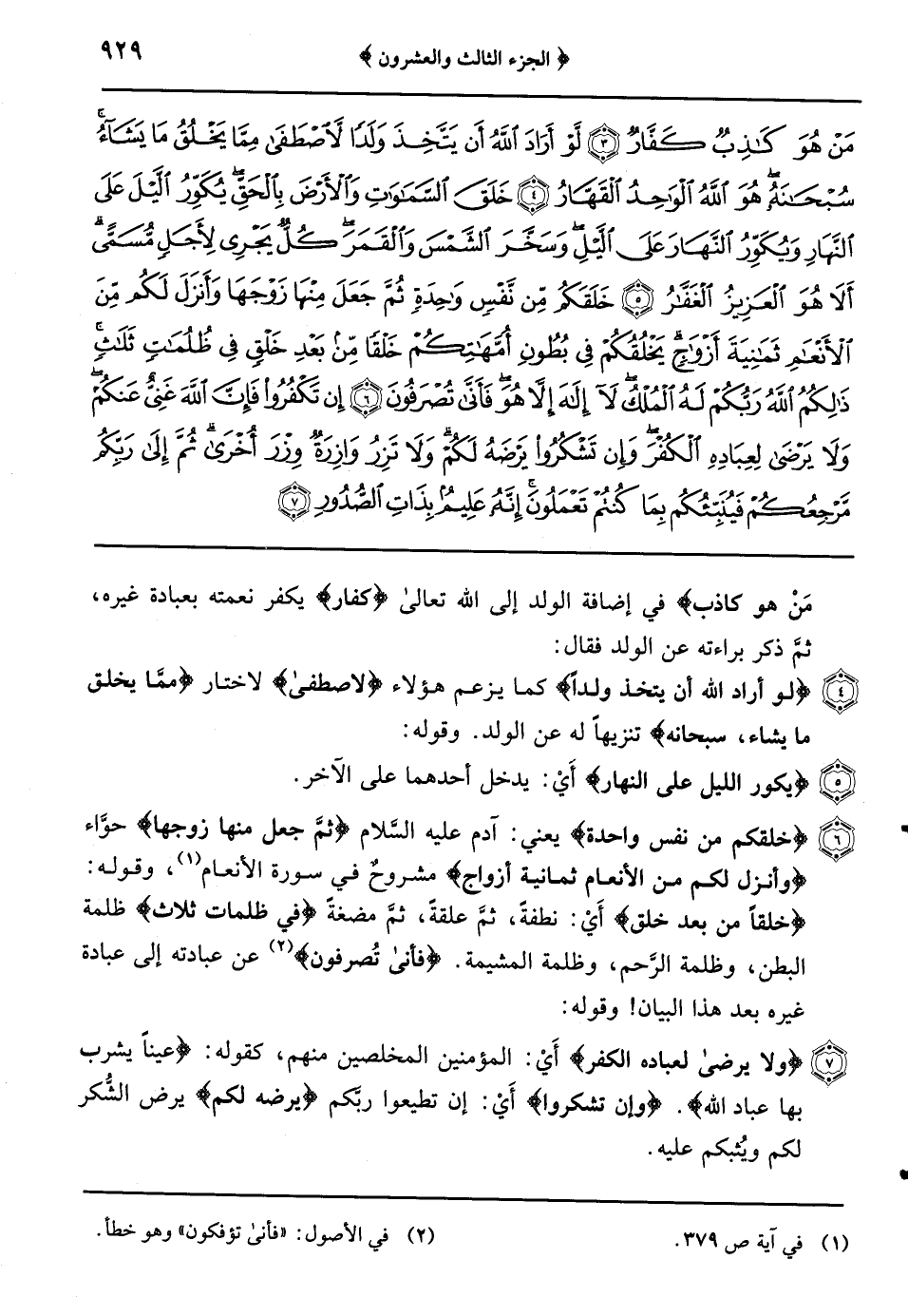 {أَلَمْ تَرَ أَنَّ اللَّهَ أَنْزَلَ مِنَ السَّمَاءِ ماء فسلكه} أدخل ذلك الماء {ينابيع في الأرض} وهي المواضع التي ينبع منها الماء وكلُّ ماءٍ في الأرض فن السَّماء نزل {ثم يخرج به} بذلك الماء {زرعاً مختلفا ألوانه} خضرة وصفرةً {ثمَّ يهيج} ييبس {فتراه مصفراً ثم يجعله حطاماً} دُقاقاً فتاتاً {إنَّ في ذلك لذكرى لأولي الألباب} يذكرون ما لهم من الدَّلالة في هذا على توحيد الله تعالى وقدرته