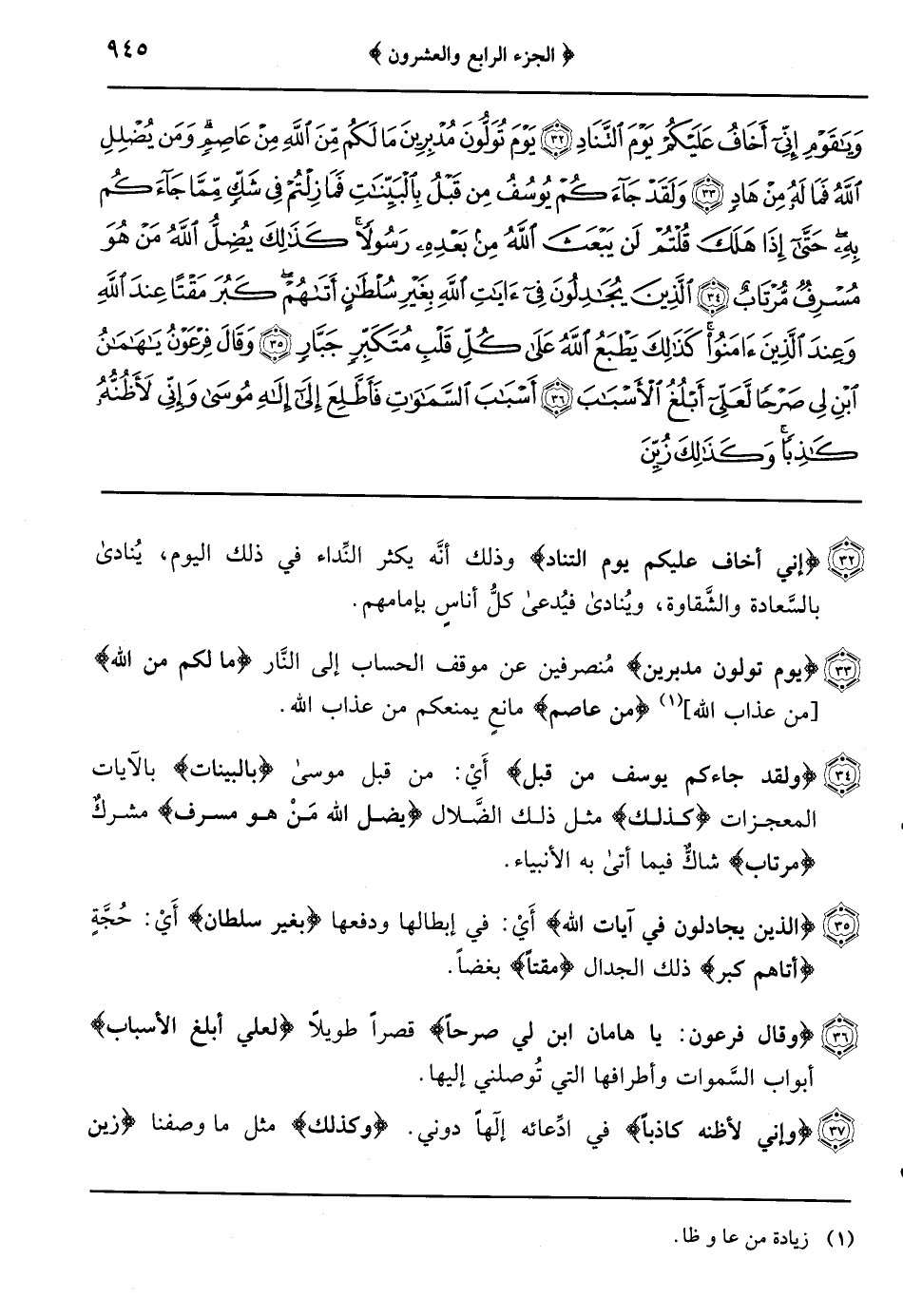 {قالوا: أَوَلَمْ تك تأتيكم رسلكم بالبينات قالوا: بلى قالوا: فادعوا} أَيْ: فادعوا أنتم إذاً فإنَّا لن ندعو الله لكم {وما دعاء الكافرين إلاَّ في ضلال} هلاكٍ وبطلانٍ لأنَّه لا ينفعهم