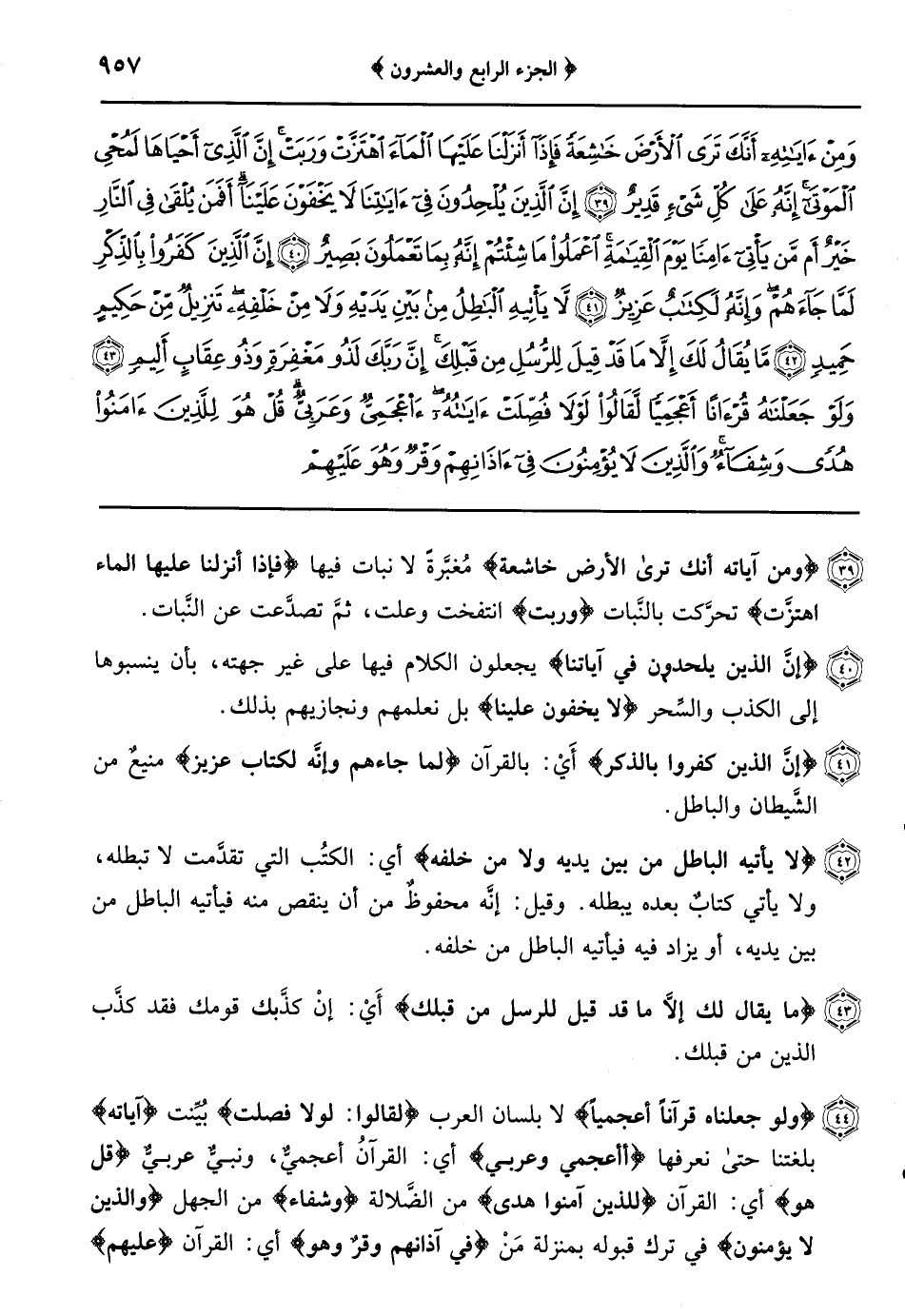 {سنريهم آياتنا في الآفاق} ما يفتح على محمَّد صلى الله عليه وسلم من القرى {وفي أنفسهم} فتح مكة {حتى يتبين لهم} أنَّ القرآن حقٌّ وصدقٌ منزلٌ من عند الله تعالى {أَوَلَمْ يكف بربك أنَّه على كل شيء شهيد} وهو يشهد لمحمَّد عليه السَّلام ولكتابه بالصِّدق