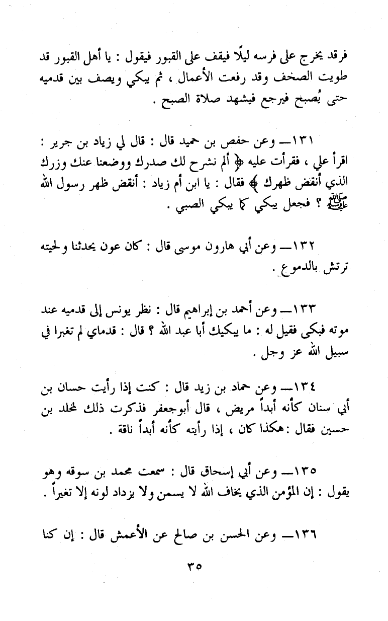 132 - (4/ 249) عَنْ أَبِي هَارُونَ مُوسَى قَالَ: «كَانَ عَوْنٌ يُحَدِّثُنَا وَلِحْيَتُهُ تَرْتِشُ بِالدُّمُوعِ»