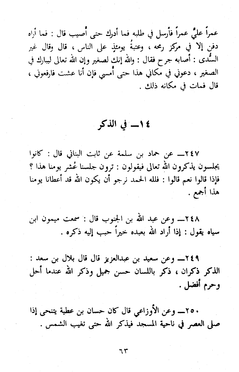 248 - (3/ 107) عَنْ عَبْد اللهِ بْنُ الْجَنُوبِ قَالَ: سَمِعْتُ مَيْمُونَ بْنَ سِيَاهٍ يَقُولُ: «إِذَا أَرَادَ اللهُ بِعَبْدِهِ خَيْرًا حَبَّبَ إِلَيْهِ ذِكْرَهُ»