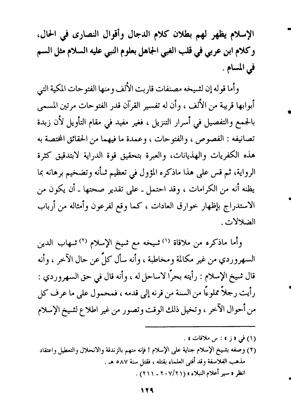 الْإِسْلَام يظْهر لَهُم بطلَان كَلَام الدَّجَّال وأقوال النَّصَارَى فِي الْحَال وَكَلَام ابْن عَرَبِيّ فِي قلب الغبي الْجَاهِل بعلوم النَّبِي مثل السم فِي المسام
