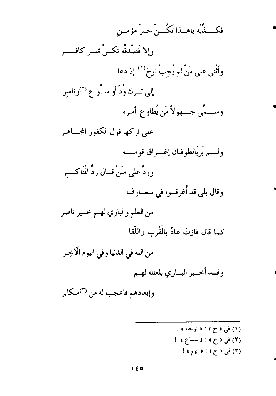 (وَقَالَ بلَى قد أغرقوا فِي معارف ... من الْعلم والباري لَهُم خير نَاصِر)