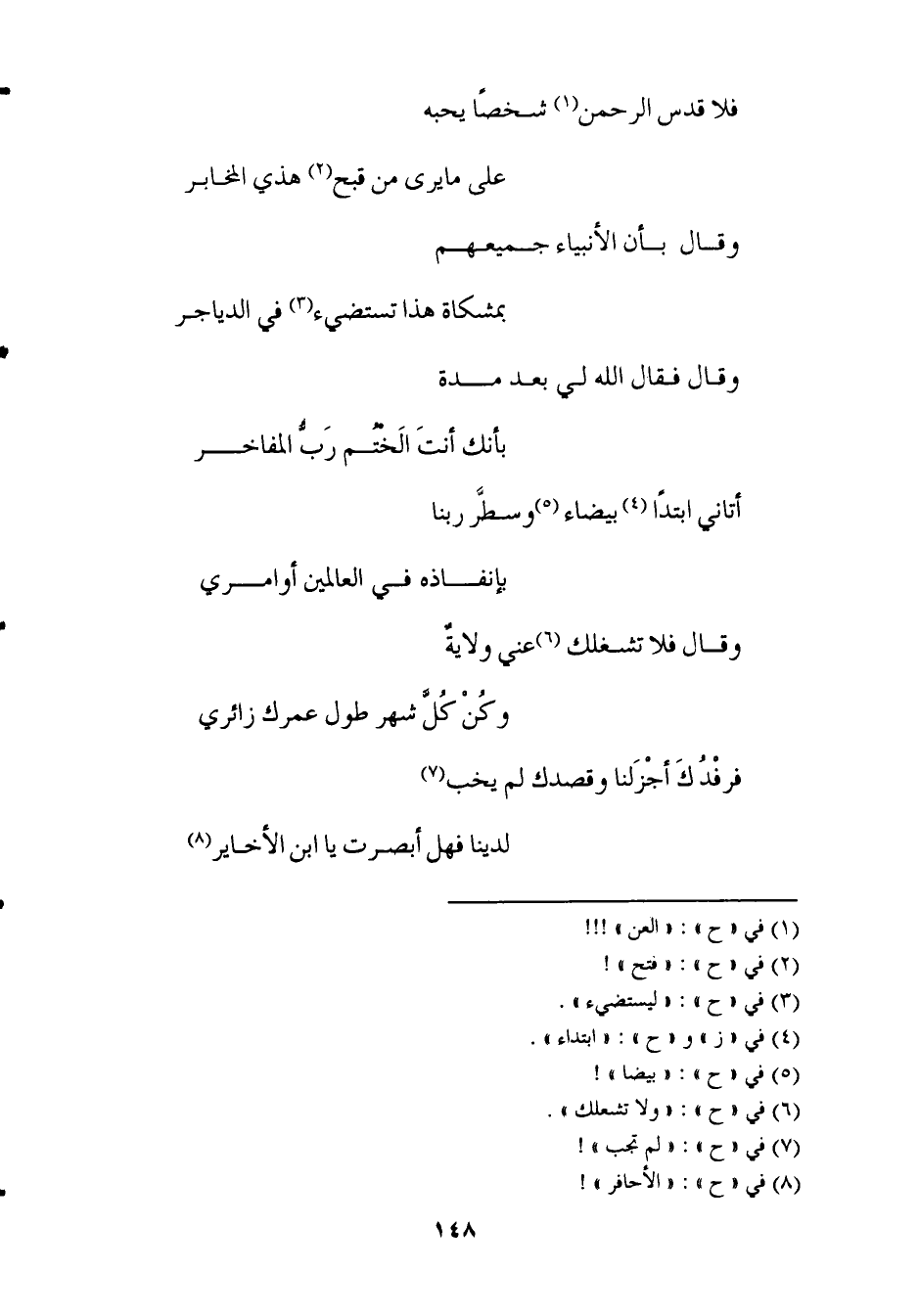 (أَتَانِي ابتدا بَيْضَاء وسطر رَبنَا ... بإنفاذه فِي الْعَالمين أوامري)