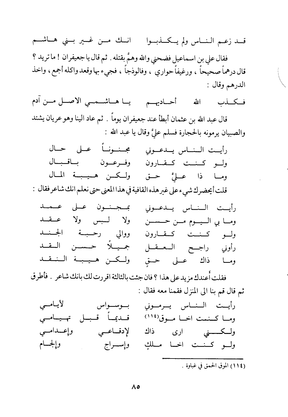 قال عبد الله بن عثمان أبطأ عند جعيفران يوماً. ثم عاد إلينا وهو عريان يشتد والصبيان يرمونه بالحجارة فسلم علي وقال يا عبد الله: