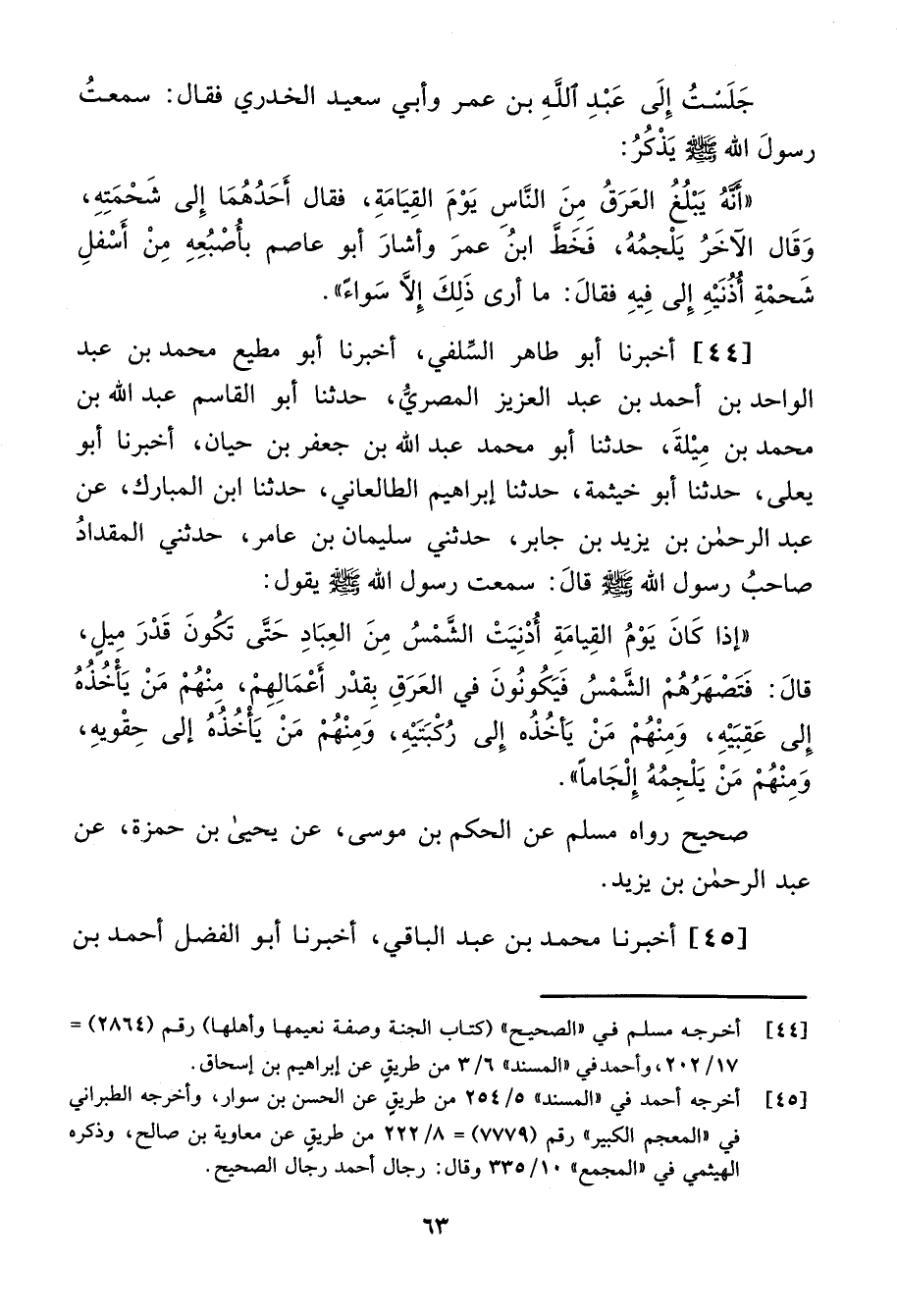 44 - أخبرنا أبو طاهر السلفي أخبرنا أبو مطيع محمد بن عبد الواحد بن أحمد بن عبد العزيز المصري حدثنا أبو القاسم عبد الله بن محمد بن ميلة حدثنا أبو محمد عبد الله بن جعفر بن حيان أخبرنا أبو يعلى حدثنا أبو خيثمة حدثنا إبراهيم الطالعاني حدثنا ابن المبارك عن عبد الرحمن بن يزيد بن جابر حدثني سليمان بن عامر حدثني المقداد صاحب رسول الله صلى الله عليه وسلم قال سمعت رسول الله صلى الله عليه وسلم يقول