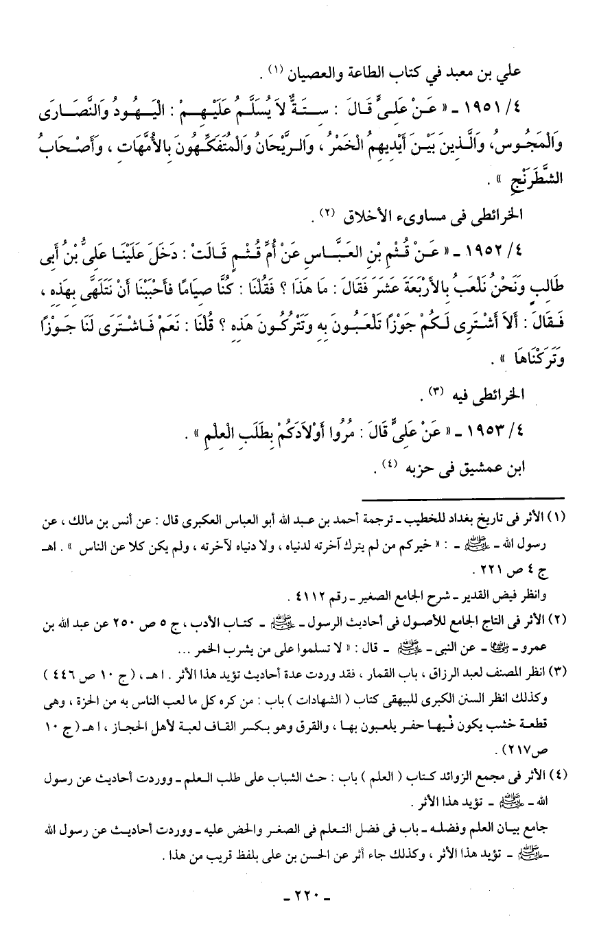 4/ 1953 - "عَنْ عَلِىٍّ قَالَ: مُرُوا أَوْلَادَكُمْ بِطَلَبِ الْعِلْمِ".