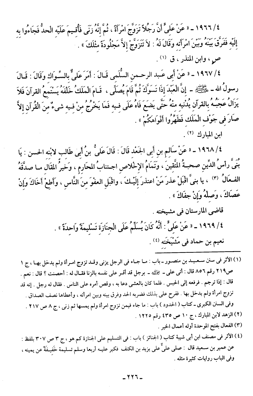 4/ 1969 - "عَنْ عَلِىٍّ: أَنَّهُ كَانَ يُسَلِّمُ عَلَى الْجِنَازَةِ تَسْلِيمَةً وَاحِدَةً".