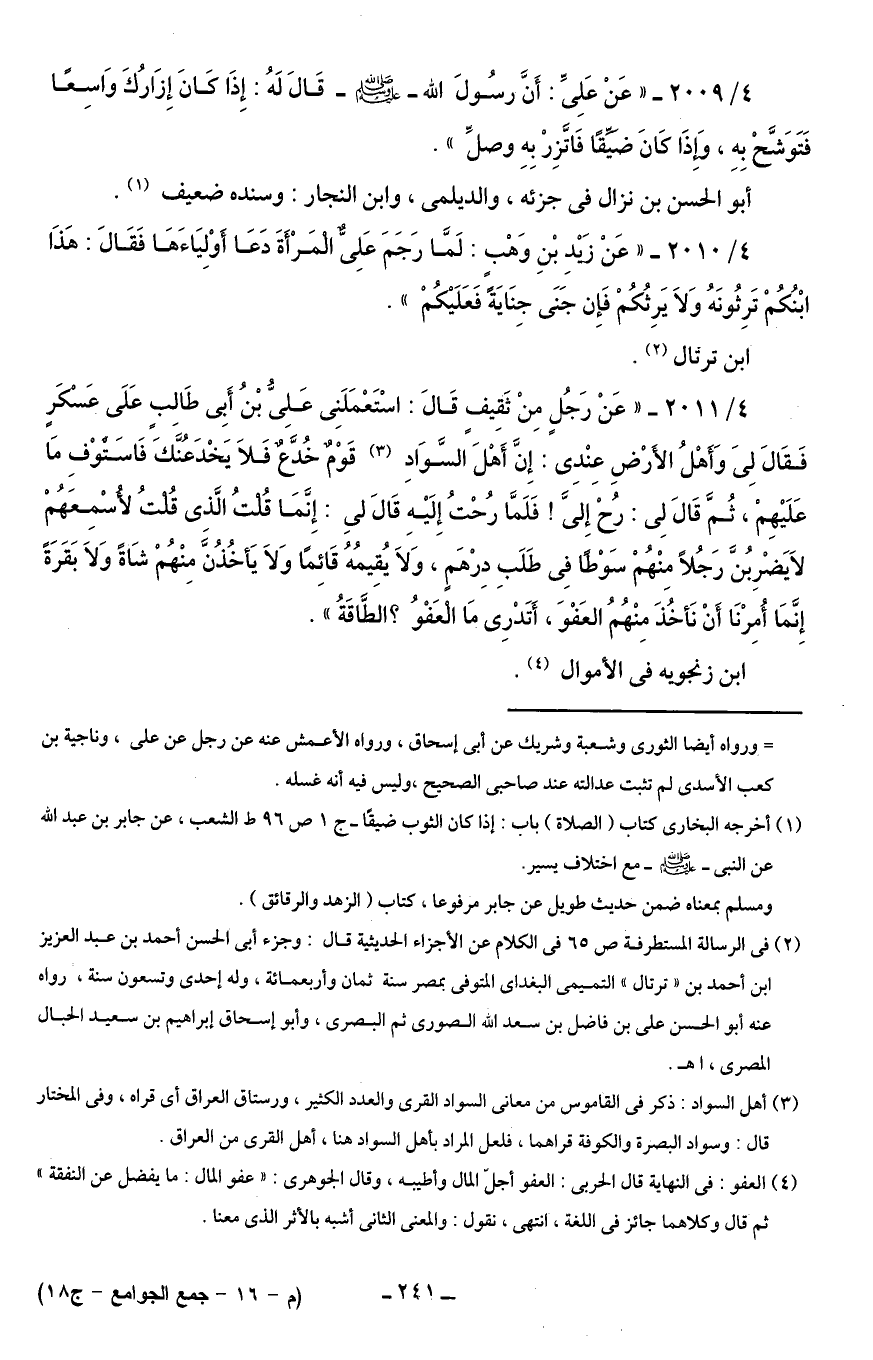 (¬3) أهل السواد: ذكر في القاموس من معاني السواد القرى والعدد الكثير، ورستاق العراق أى قراه، وفى المختار قال: وسواد البصرة والكوفة قراهما، فلعل المراد بأهل السواد هنا، أهل القرى من العراق.