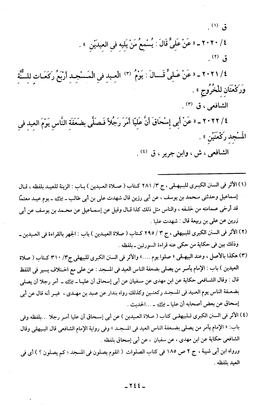 4/ 2021 - "عَنْ عَلِىٍّ قَالَ: يَوْمُ (¬3) الْعِيدِ فِى الْمَسْجِدِ أَرْبَعُ رَكَعَاتٍ للِسُّنَّةِ وَرَكْعَتَانِ لِلْخُرُوجِ".