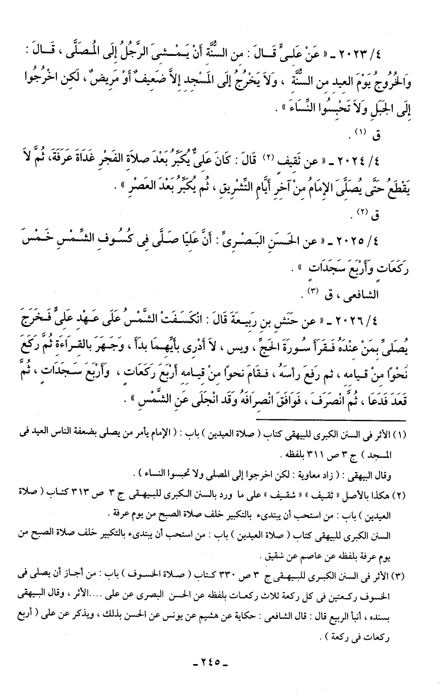 4/ 2023 - "عَنْ عَلِىٍّ قَالَ: مِن السُّنَّةِ أَنْ يَمْشِىَ الرَّجُلُ إِلَى المُصَلَّى، قَالَ: وَالخُرُوجُ يَوْمَ العِيدِ مِن السُّنَّةِ، وَلَا يَخْرُجُ إلَى المَسْجِدِ إِلَّا ضَعِيفٌ أَوْ مَرِيضٌ، لَكِن اخْرُجُوا إِلَى الجَبَلِ وَلَا تَحْبِسُوا النِّسَاءَ".
