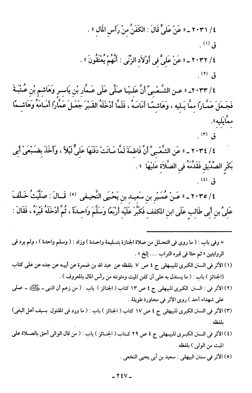 4/ 2031 - "عَنْ عَلىٍّ قَالَ: الكَفَنُ مِنْ رَأسِ المَالِ".