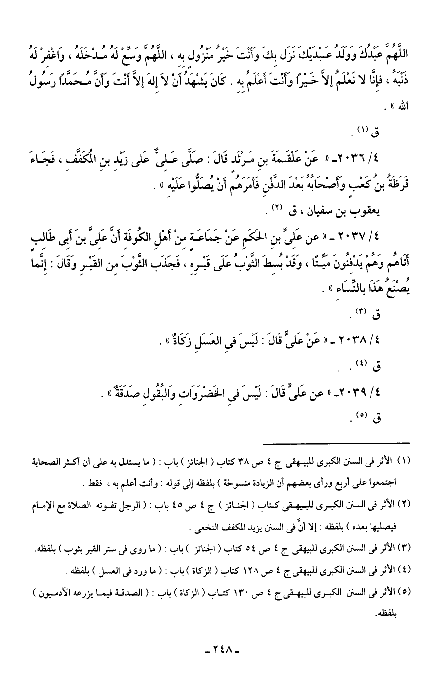 4/ 2038 - "عَنْ عَلىٍّ قَالَ: لَيْسَ فِى العَسَلِ زَكَاةٌ".