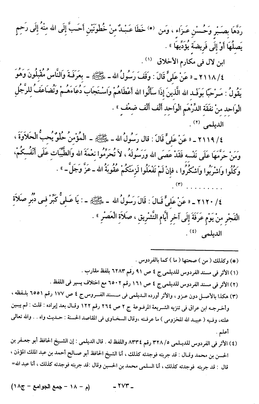 (¬2) الأثر في مسند الفردوس للديلمى ج 4 ص 161 رقم 6502 مع اختلاف يسير في اللفظ.