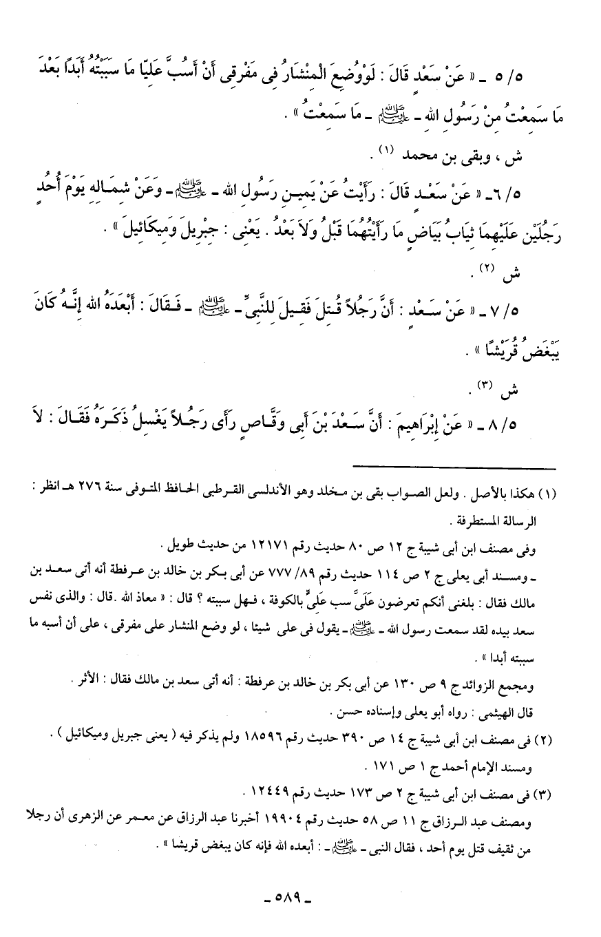 5/ 7 - "عَنْ سَعْدٍ: أَنَّ رَجُلًا قُتِلَ فَقِيلَ لِلنَّبِىِّ - صلى الله عليه وسلم - فَقَالَ: أَبْعَدَهُ الله إِنَّهُ كَانَ يَبْغَضُ قُرَيْشًا".