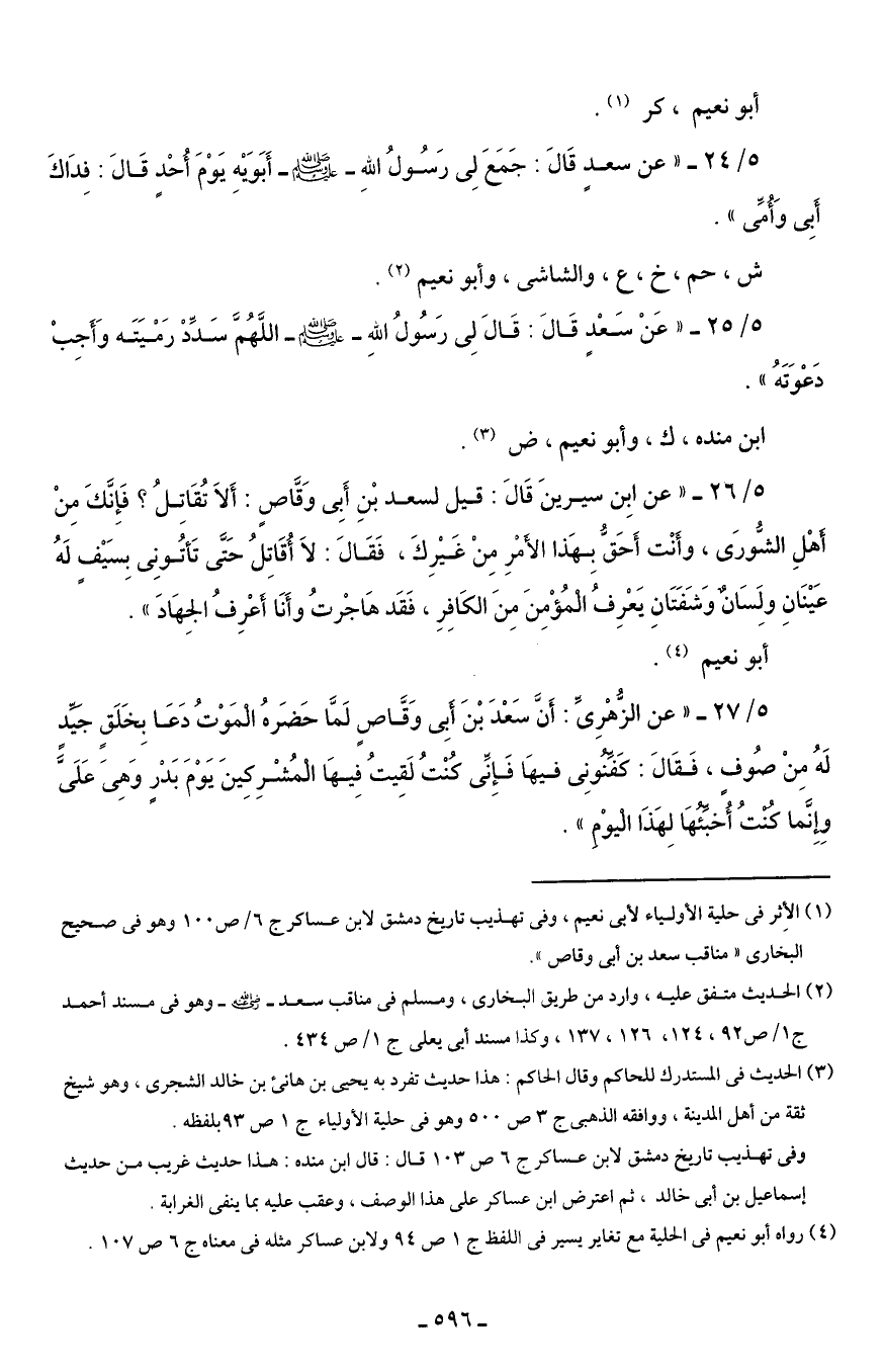 (¬1) الأثر في حلية الأولياء لأبى نعيم، وفى تهذيب تاريخ دمشق لابن عساكر ج 6/ ص 100 وهو في صحيح البخارى "مناقب سعد بن أبى وقاص".